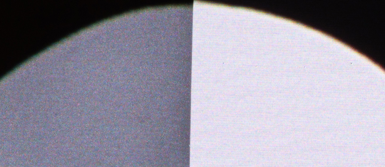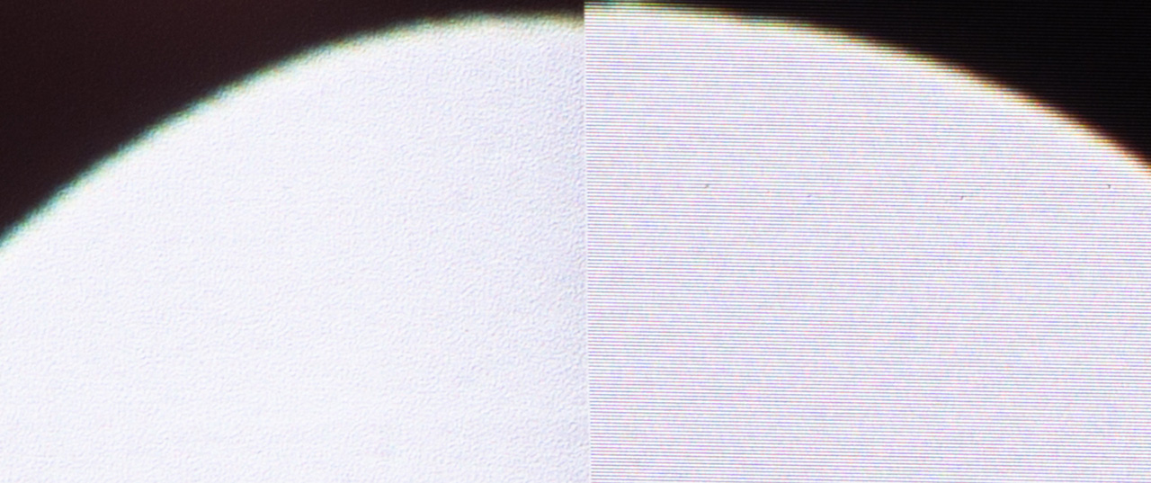 As you can see, both on the CLR and on the white screen, the speckle almost disappears. So, as you understand, choosing the right screen depending on how sensitive you are to laser speckle is extremely important.