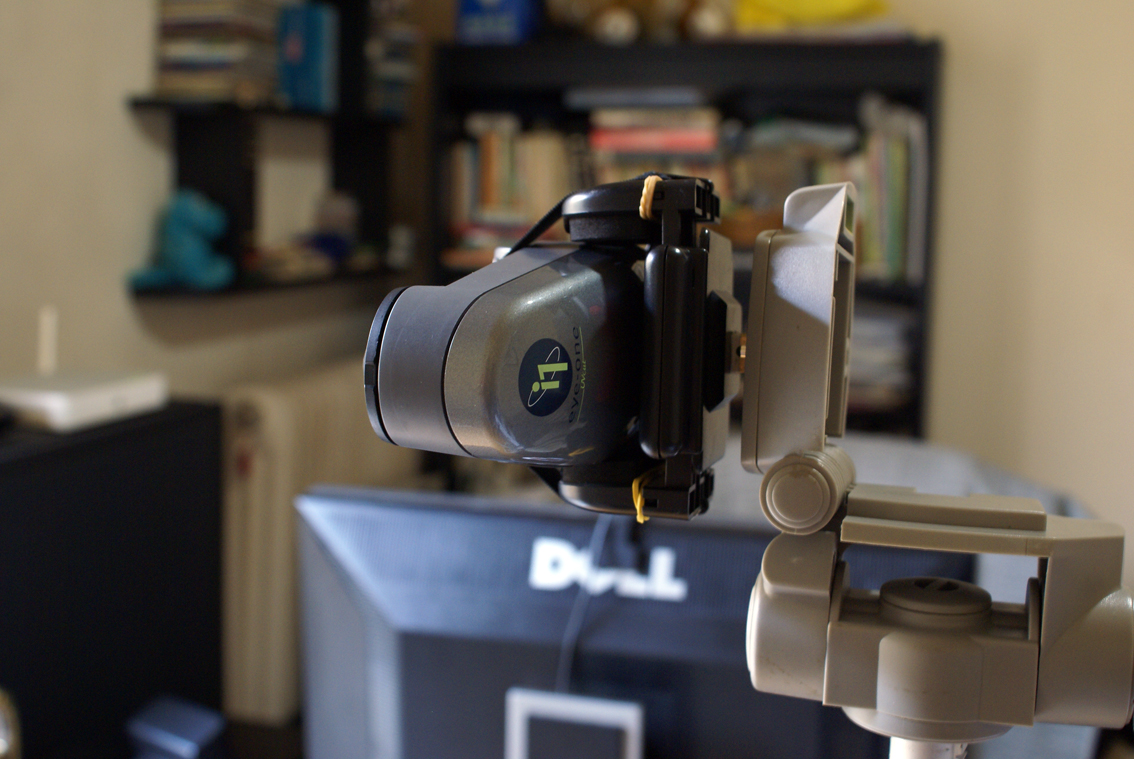 If for example, your only need is to calibrate the tv or projector, then you don’t need anything else beyond the i1 Pro and initialize the plate. Download and HCFR in 2.0 that supports him and you’re ready to start! You will miss only one accessory: the so-called tripod holder that stabilizes the i1 Pro tripod for measurements from a projector screen or from a tv LCD or Plasma. The patents that you can do it a lot, here in the photo you see one our own patent for our own i1 Pro. Has used a basis for mobile phone in the car, and a small piece of rubber strap, on whose edges are stitched two small hooks.