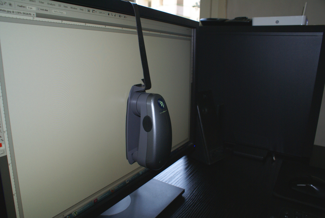 Every effort was made by my side, so that the i1 Pro be placed and measure at the exact same point in Dell U2410 and with both programs, in my quest to get out of the equation the factor of color monitor’s display, and to achieve this I used the following trick: the monitor on the back side has a slight edges at the top of the base , which is more than sufficient in size to accommodate the balancing weight of flat screen holder of the i1 Pro. Placing the weight balancing in the center of koyrmpas and aligned with the belt, I ensured the i1 Pro placement at the center of the monitor in relation to the horizontal axis. Then placing the balancing weight in such a way so that it barely touches on the edges, I ensure the placement of the i1 Pro at the exact same point of monitors in terms of height on the vertical axis.
