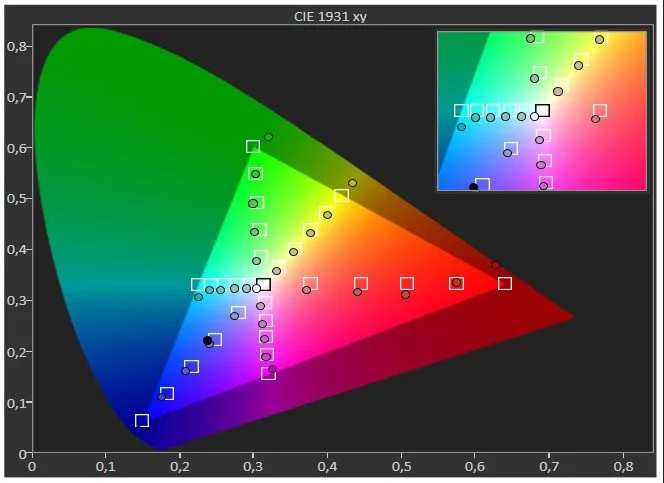 Chromaticism the tw5650 is considered very good with the exception of 100% of the red that follows an oversaturated “orange” path, its own. Small Evil One and colors in their 100% in movie view will rarely look, so this behavior does not pose a particular problem I would say. The remaining color triangle of the tw5650 moves to normal levels with the correct spacing of the gradients in all primary and secondary colors. The slightly “blue” black that has rightly grasped the instrument is not as sharp as the diagram shows. You can barely see it if your eye is experienced enough…