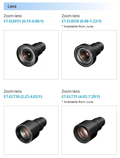 Factory comes with a lens that boasts throw ratio 1.22-2.26 and zoom 1.8 X other the owner has the choice of other four if necessary.