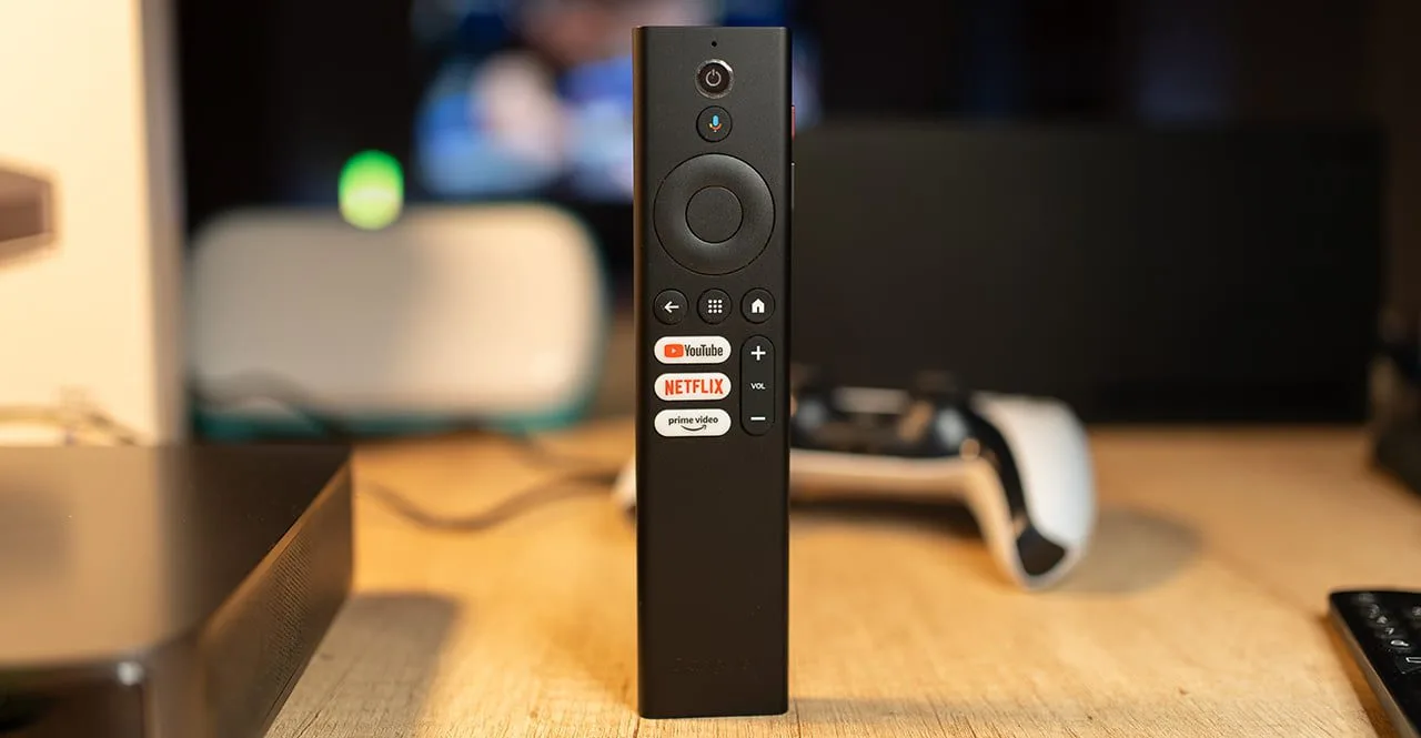 The remote control has separated buttons for the three basic streaming platforms and two side buttons.