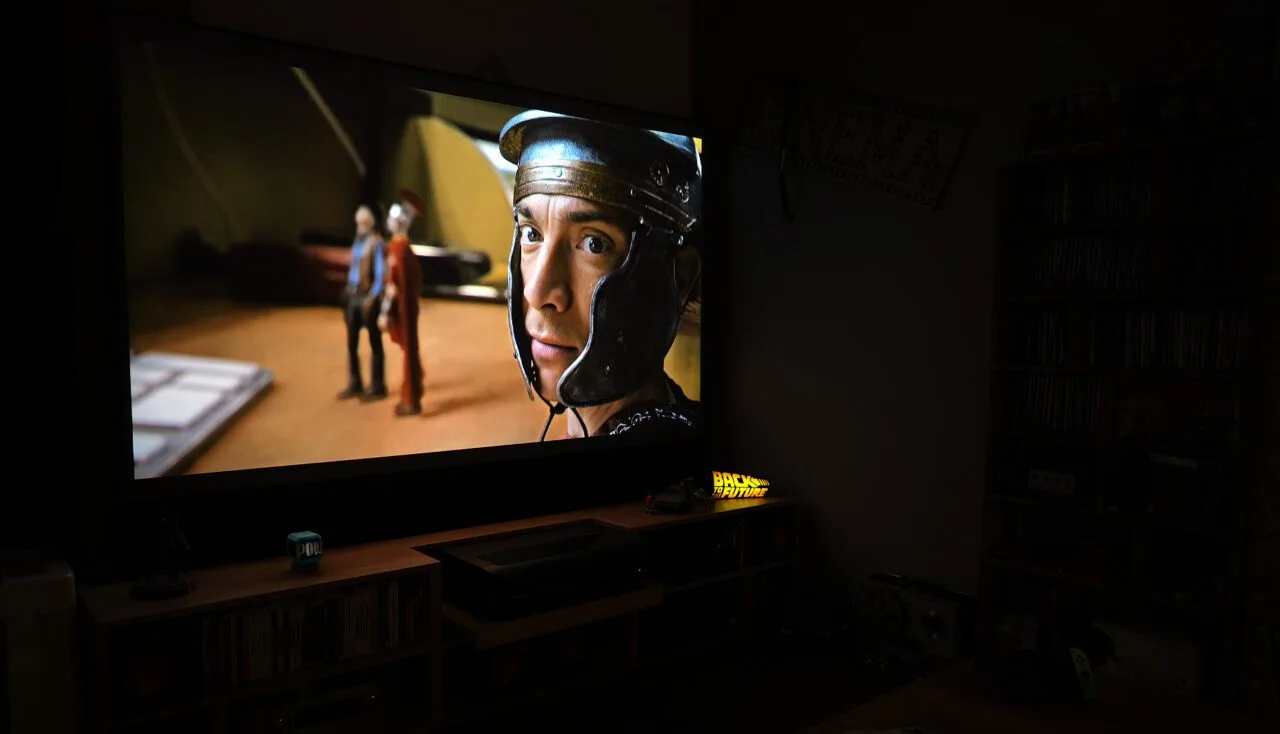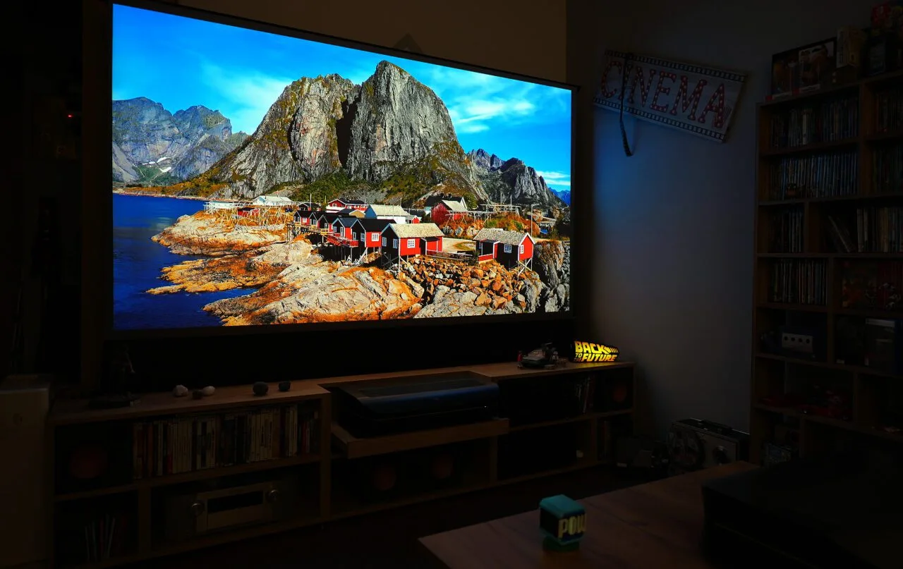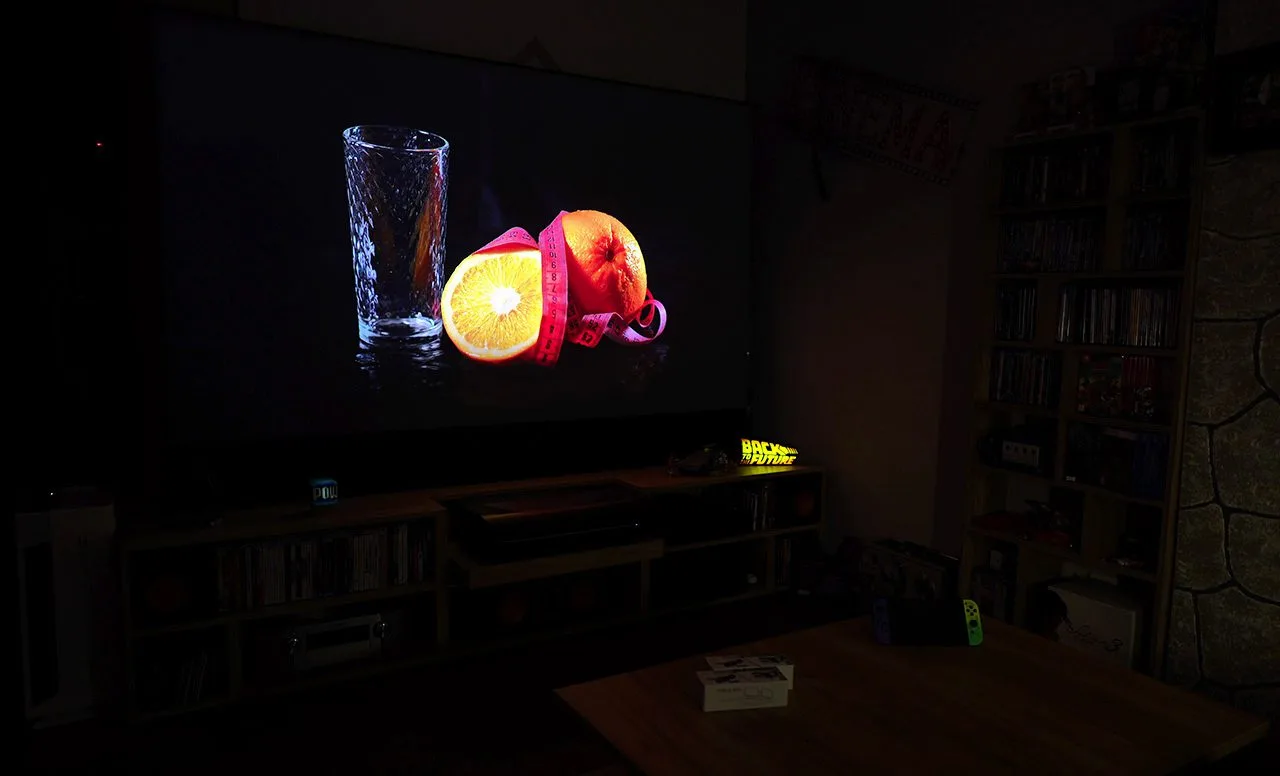 I spent some time placing the projector because installing it on my furniture was not as simple as I had anticipated. Different optics from my LTV-2500 meant different positioning. As I mentioned before, installing a new UST projector can be quite challenging, even if it seems like a simple procedure.