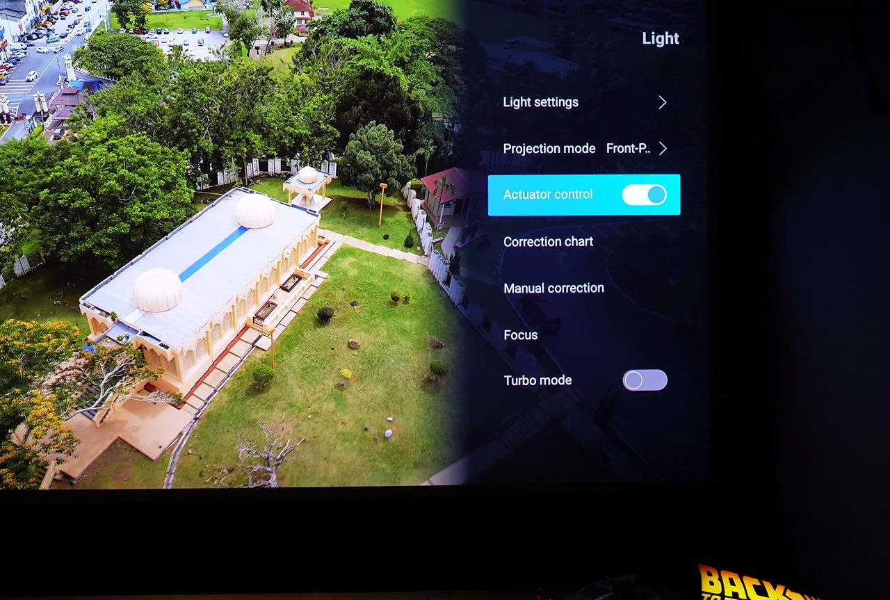 This type of menu is like an oasis in the desert compared to the cluttered Chinese-style menus of projectors like Xiaomi UST or the complicated and inconvenient Android menus of the Formovie UST projector. It’s clean, easy to use, even while watching your movie.