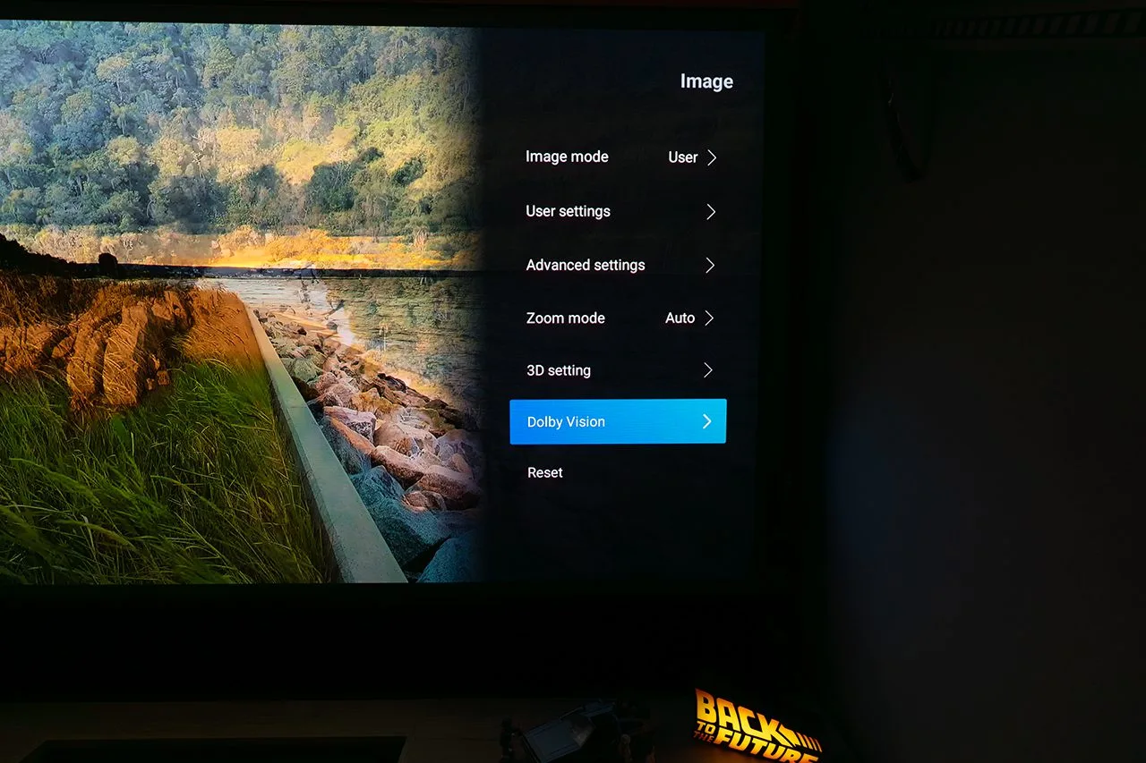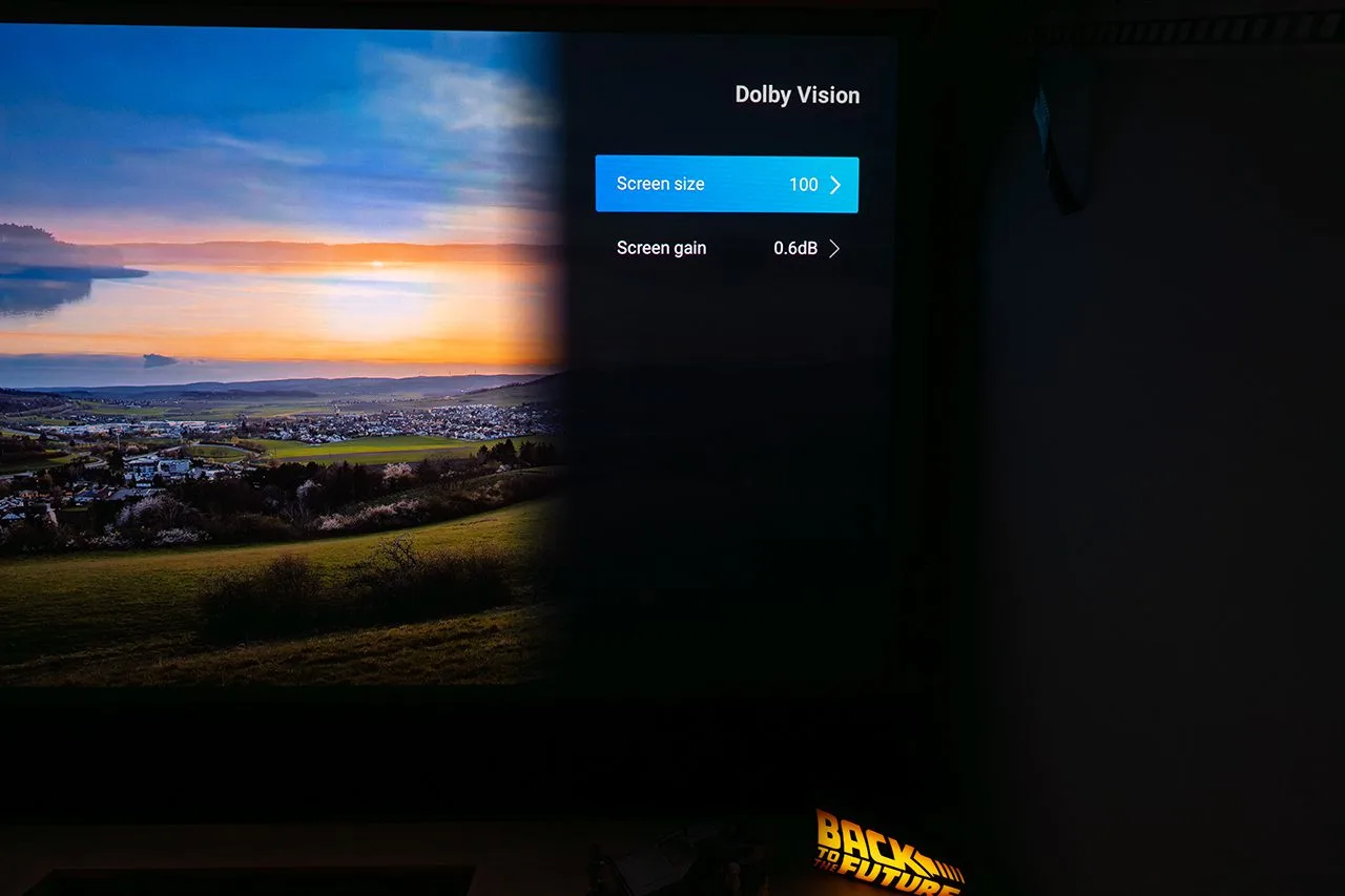 An important update worth noting is that after the latest firmware update, Dolby Vision has finally been added! This introduces a new option in the menu related to Dolby Vision, along with some new parameters such as the size of our screen and its reflection degree (gain).