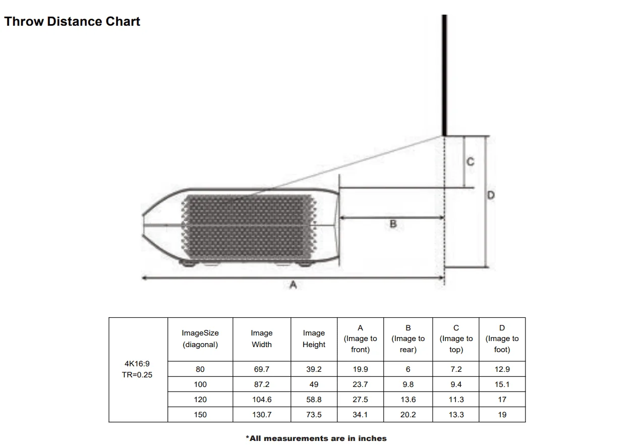 The LTV-3000pro, like the other two AWOL models, has a 0.25 throw ratio. Therefore, you need to carefully calculate various parameters to proceed with a successful fixed installation.