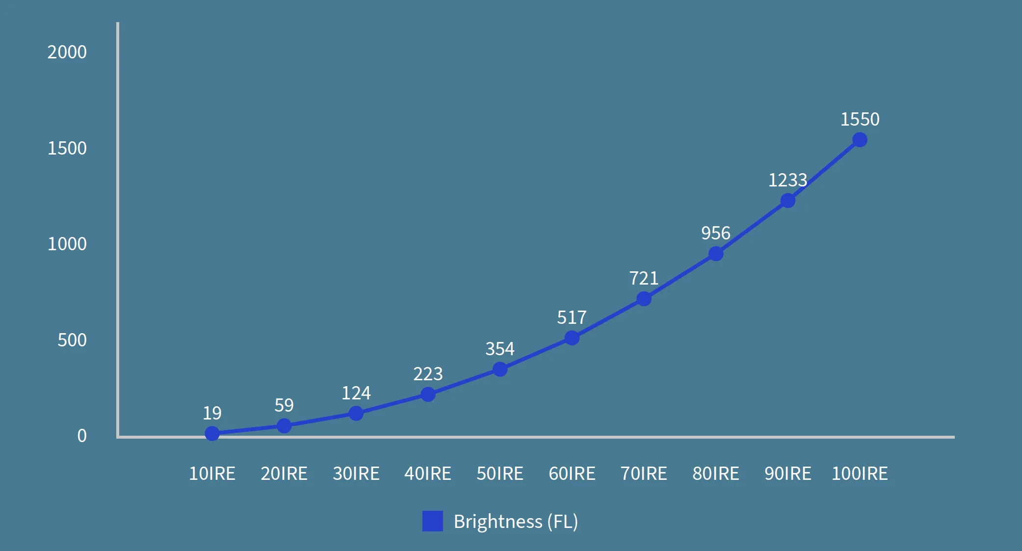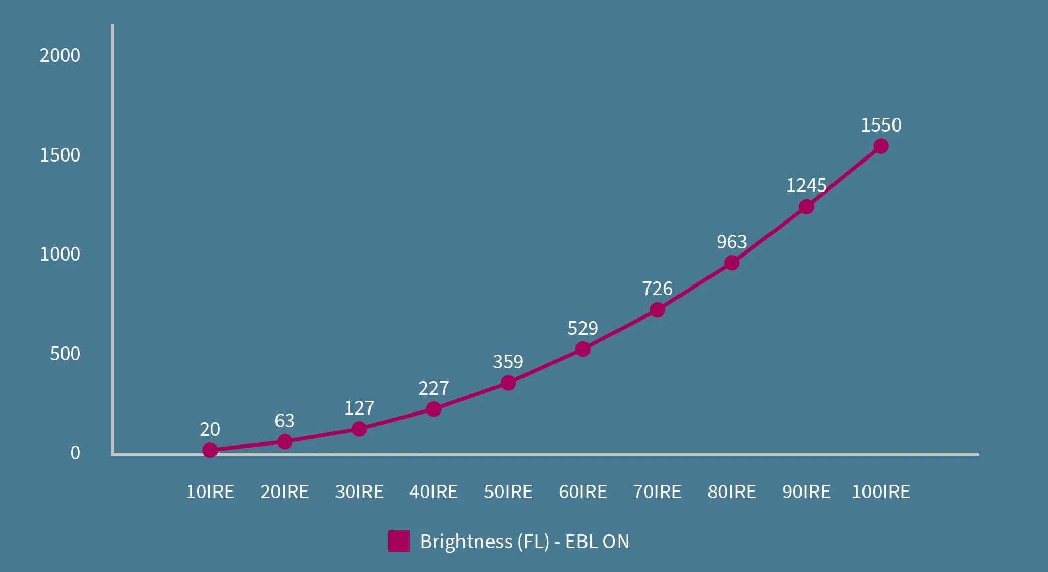 I measured full screen patterns from 10 to 100 IRE, both with and without EBL. The EBL algorithm perfectly maintains the brightness on the whole grayscale.