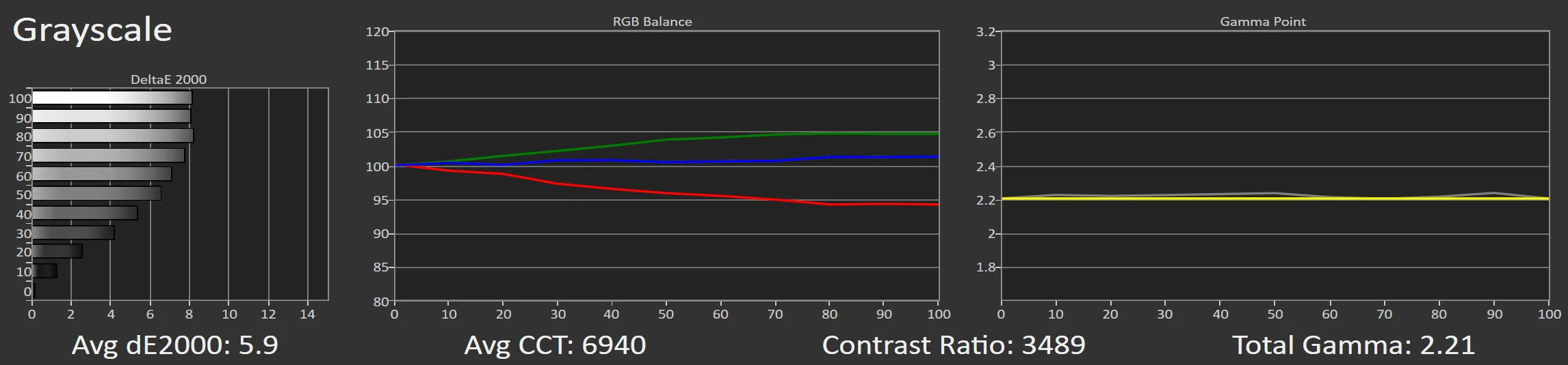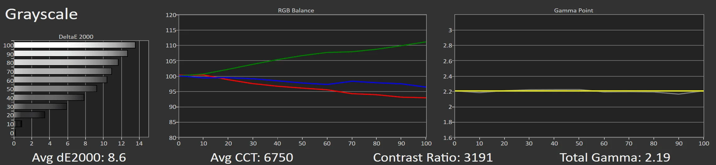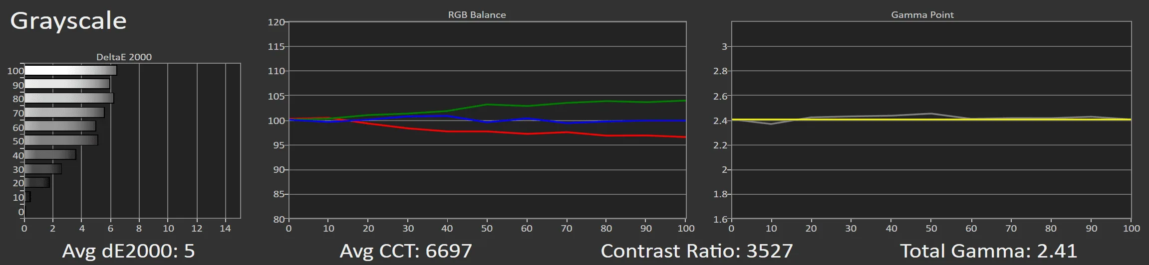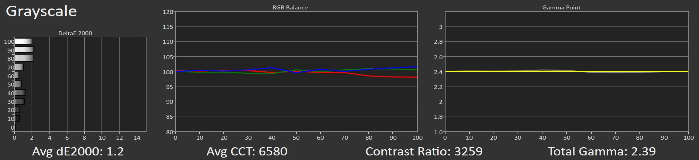 With a few simple adjustments, such as slightly lowering the green in the 2-point white balance adjustment setting, the grayscale on the Pro 2 achieves near perfection.
