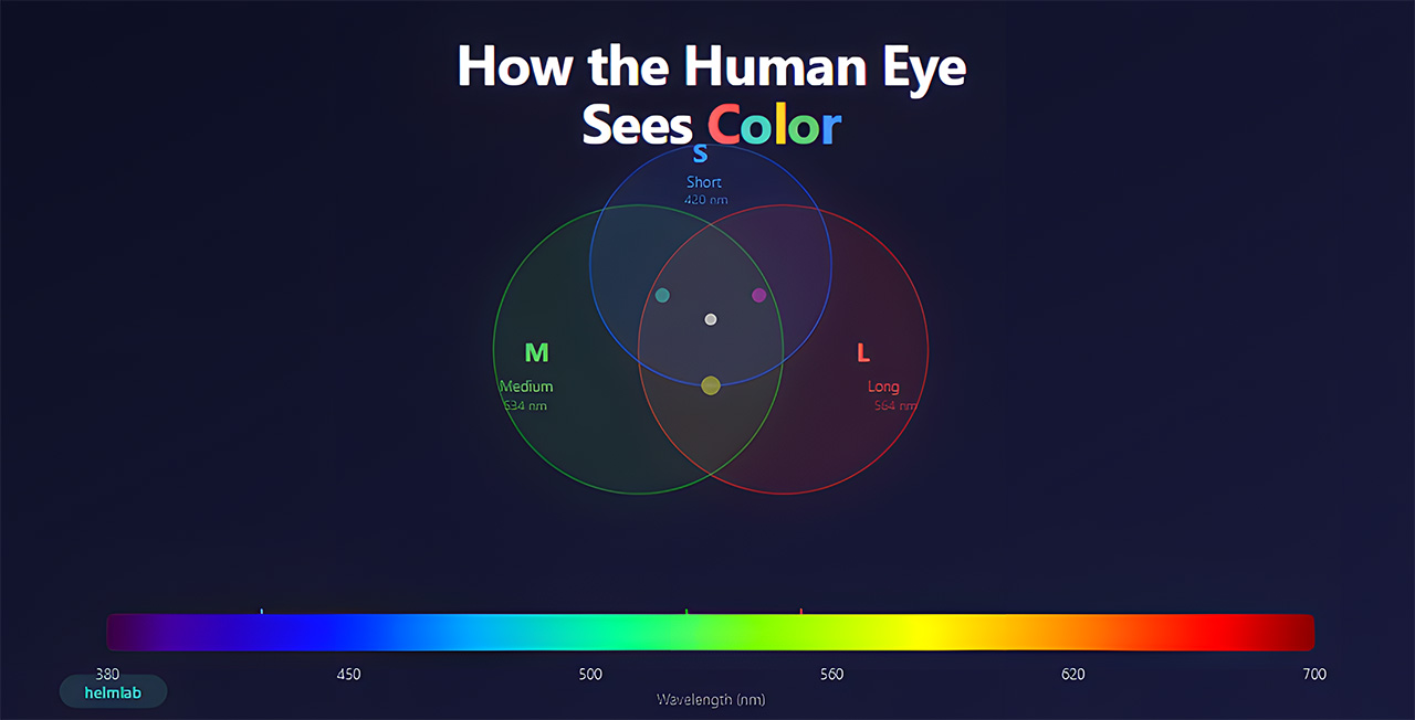 Human vision is not identical from person to person. Each individual has slightly different spectral sensitivity due to variations in the response of the L, M and S cones, and under normal conditions the brain compensates for these differences through chromatic adaptation, allowing us to perceive a consistent image. However, this compensation mechanism has evolved under continuous spectrum light sources, such as daylight or incandescent lighting.