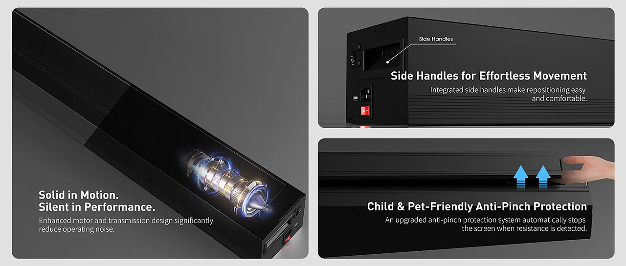 The screen also includes anti-pinch protection and dual trigger support, with both USB and wireless trigger options included as standard. Combined with the updated motor system, the LeApex EVO looks like a very solid, high-quality solution for anyone who wants to maximize their UST projector performance.